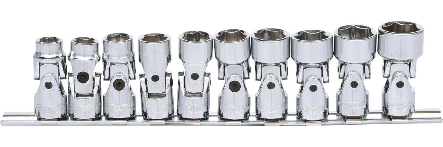 KS TOOLS 3/8" CHROMEplus Sechskant-Stecknuss-Satz mit Gelenk, 10-tlg10-19mm
