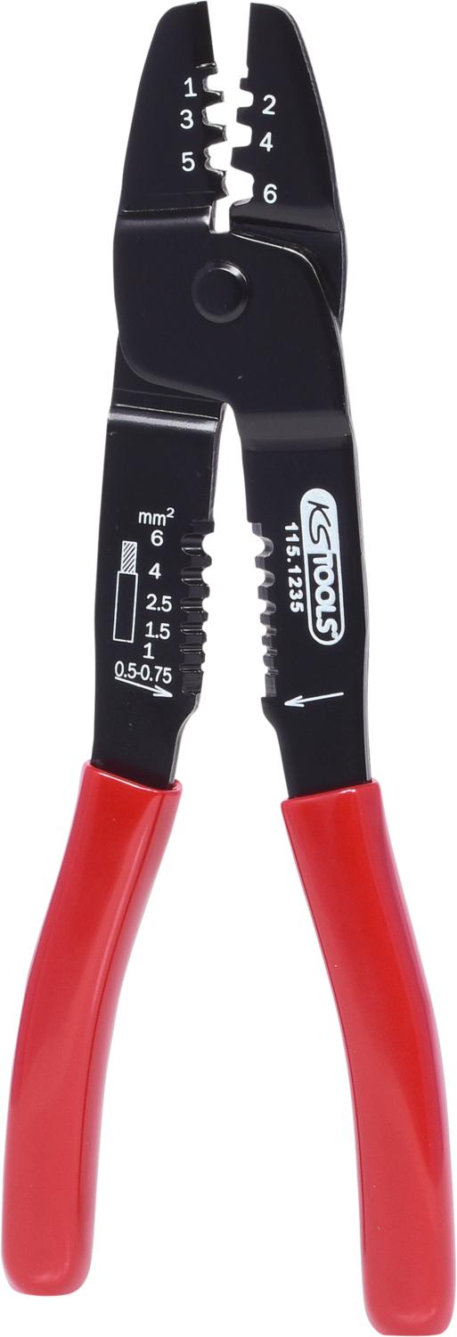 - crimpen von Flachstecker 2,8 / 4,8 / 6,3 mm und weiteren Elektrokontakten mit offener Crimphülse