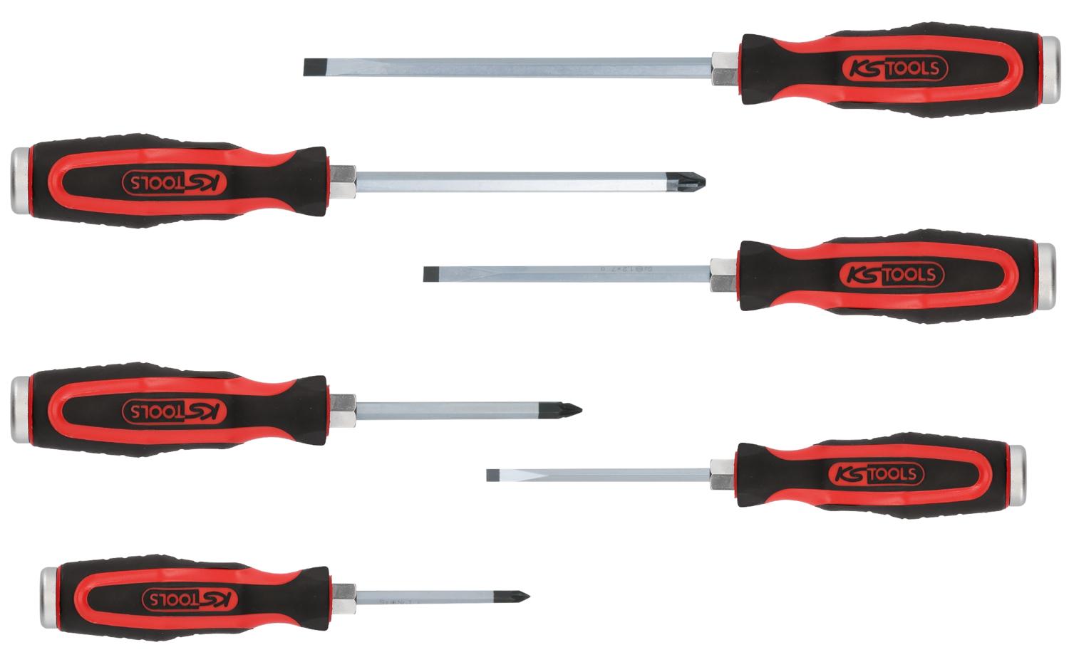 KS TOOLS ERGOTORQUEmax Schlagkappen-Schraubendreher-Satz, 6-tlg Schlitz, PZ