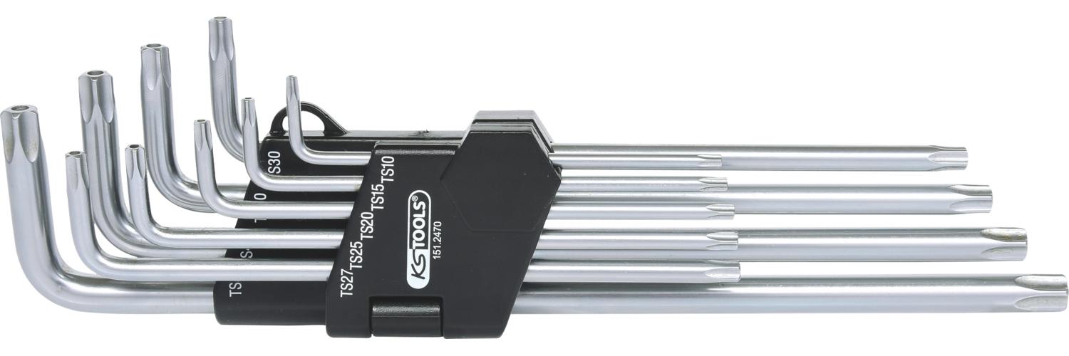 KS TOOLS Fünfstern-Winkelstiftschlüssel-Satz, Bohrung, lang, 9-tlg