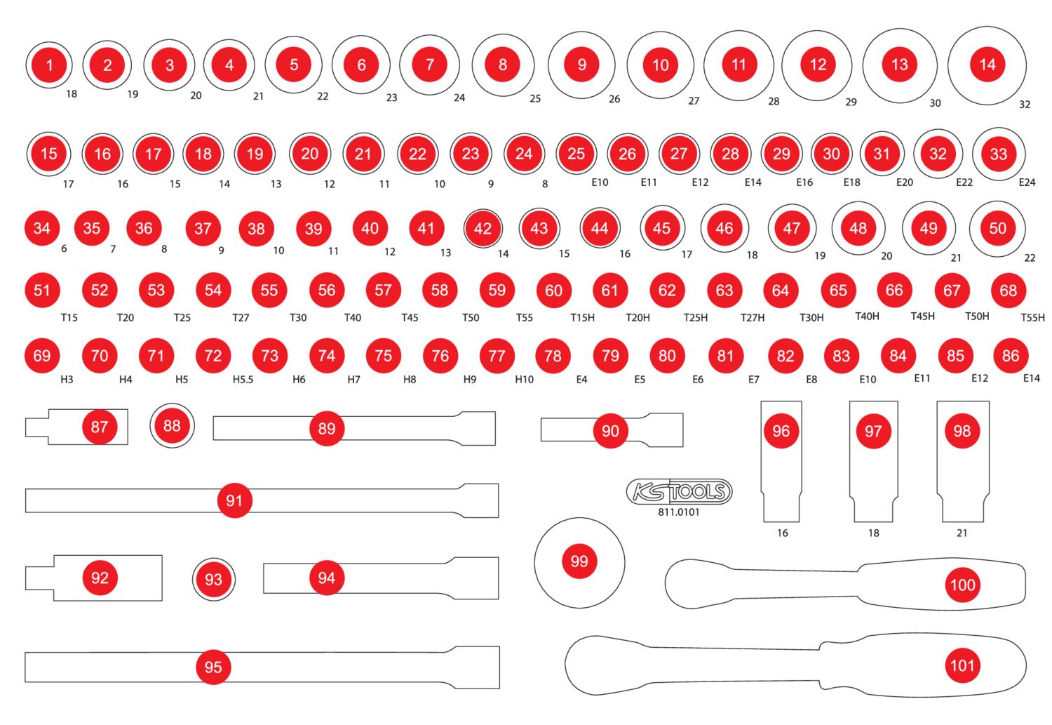 KS TOOLS Leere Schaumstoffeinlage zu 811.0101
