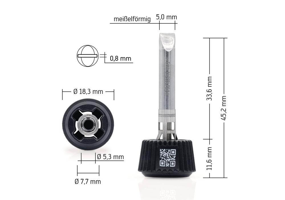 mit patentierter ERSADUR Beschichtung - konzipiert für anspruchsvolle Industrieanwendungen zur dauerhaften Nutzung · Tip’n’Turn release für schnellen und einfachen Spitzenwechsel, selbst im heißen Zustand, per Hand oder mit Hilfe eines Ablageständers · Barcode für die einfache Intregration der Lötspitze in die Lötprogramme des i-CON TRACE Cockpits · passend für: Lötwerkzeug i-TOOL TRACE, i-TOOL MK2, i-TOOL NANO MK2, i-TOOL PICO MK2