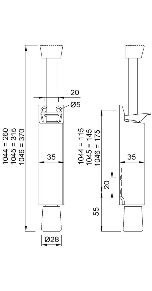 Aluminium silberfarbig einbrennlackiert ·Tretbolzen Edelstahl-Rostfrei · Gummistopfen schwarzVerwendung max. Türgewicht ca. 80 kg