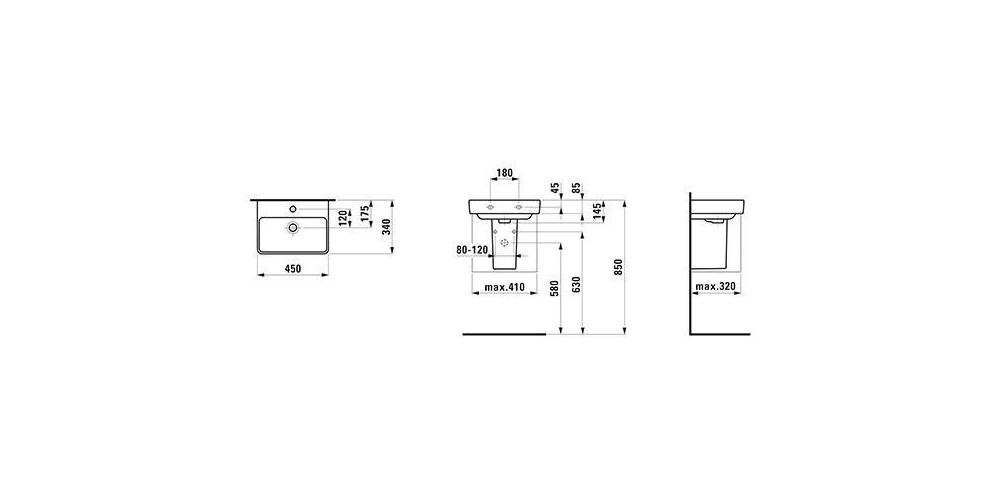 LAUFEN Handwaschbecken LAUFEN PRO S 340x450x145 1 Hahnloch mit Überlauf weißWeitere technische Eigenschaften:
