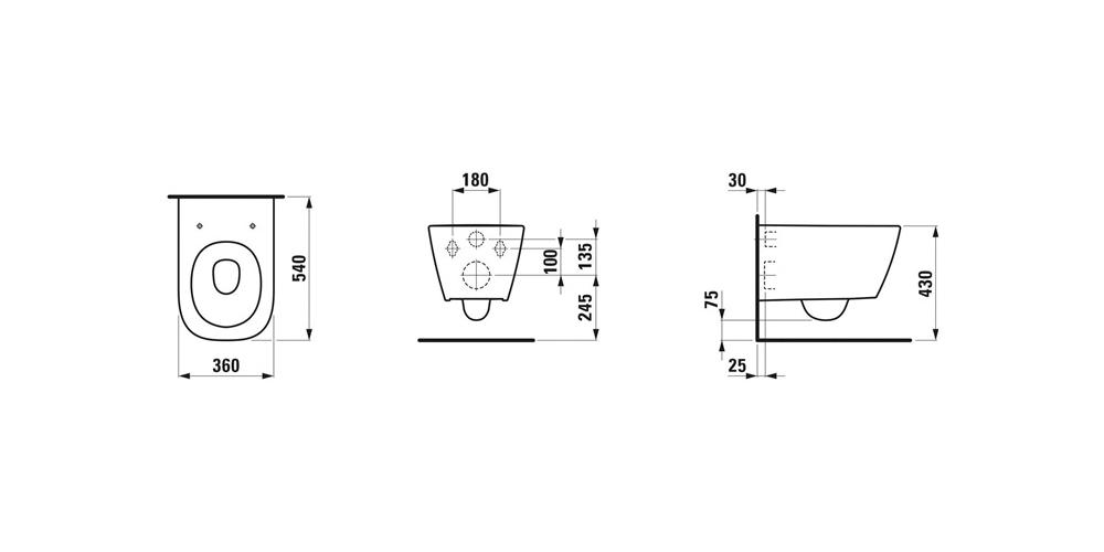 LAUFEN Pack Wand·WC Advanced (verdeckte Befestigung) + Sitz · MEDA · 540x360 · Silent Flush (Wirbelspültechnologie) · Tiefspüler · spülrandlos · inkl. Sitz mit Deckel mit Absenkautomatik · weiß bestehend aus H820110 Wand·WC und H891113 WC·Sitz mit AbsenkautomatikWeitere technische Eigenschaften:
