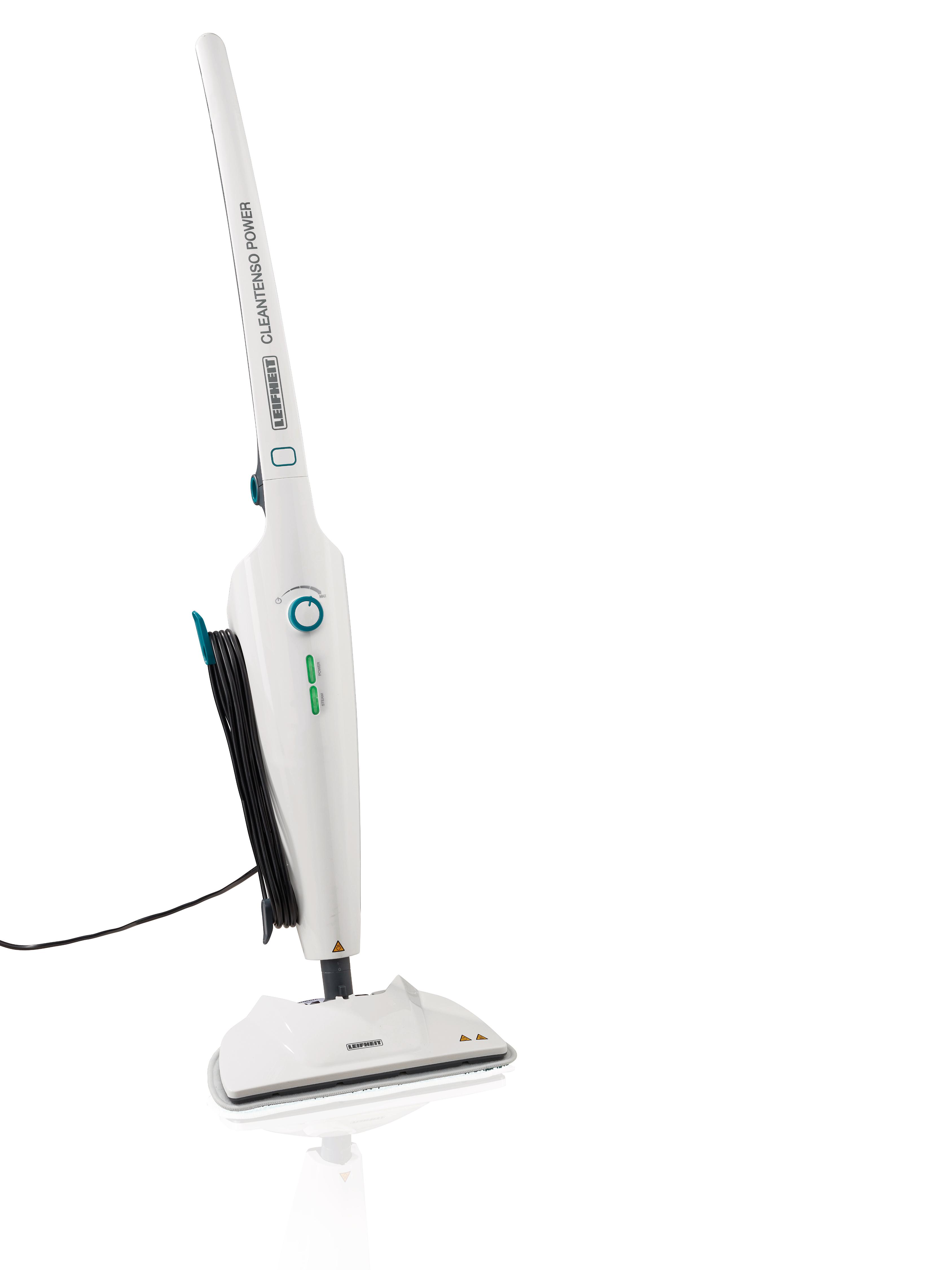 Viren und Bakterien entfernen – und das besonders gründlich: Das gelingt mit dem Dampfreiniger CleanTenso Power von Leifheit, denn er beseitigt Schmutz und Keime zuverlässig und schnell. Die 6 Power-Steam-Düsen verteilen dabei den Dampf gleichmäßig und vollflächig über den Boden und entfernen dort ganz bequem und ohne Chemie 99,99 % der Viren und Bakterien***. ###LF###Der Dampfreiniger CleanTenso Power von Leifheit überzeugt durch seine längere Garantie: 3 Jahre.**/* Er reinigt Bodenflächen mit heißem Wasserdampf und aufgrund der kurzen Aufheizzeit von weniger als 30 Sekunden steht das Gerät sehr schnell zur Verfügung. Mithilfe seiner stufenlosen Dampfeinstellung punktet das Leifheit-Gerät mit optimaler Feuchtigkeit auf verschiedenen Bodenbelägen wie Stein, Fliesen Laminat, PVC oder versiegelten Böden. Selbst für den Teppich ist der Dampfreiniger optimal einzusetzen. Mithilfe seines Teppichgleiters lassen sich empfindliche Textilbeläge dieser Art ganz einfach auffrischen. ###LF###Der abnehmbare XXL-Wassertank des Dampfmops mit 680 ml Fassungsvermögen lässt sich leicht befüllen bzw. nachfüllen und sorgt für eine extralange Nutzungsdauer von 50 Minuten. Eingesetzt auf Fliesen- oder Steinböden beseitigt das komfortable Reinigungsgerät auch starke Verschmutzungen. Sein Microfaser-Wischpad garantiert dabei eine überdurchschnittlich hohe Schmutzaufnahme. ###LF######LF######LF###* im Vergleich zu CleanTenso 11910###LF###** Leifheit Garantie www.leifheit.com###LF###***Am modifiziertem Vacciniavirus Ankara sowie am E.coli Bakterium getestet.