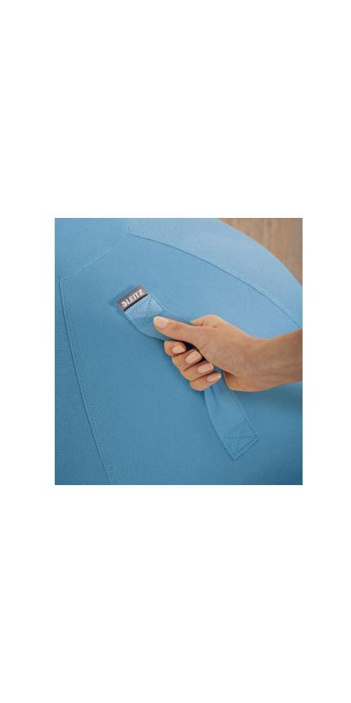 Leitz Sitzball Ergo Cosy 65cm inkl. Innenball Stoffüberzug Handluftpumpe 2 Verschlussstopfen PVC phtalatfrei 92 % Polyester 8 % Elasthan blau