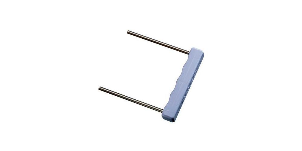 Zum Umfüllen von Schriftgut aus dem Ordner. Der Umfüller wird auf die Aufreihstifte der geöffneten Hebelmechanik gesteckt und mit der linken Hand leicht unter Druck gehalten. Mit einem Handgriff wird die gesamte Ordnerfüllung auf den Umfüller geschoben und dann auf den Abheftbügel übertragen.
