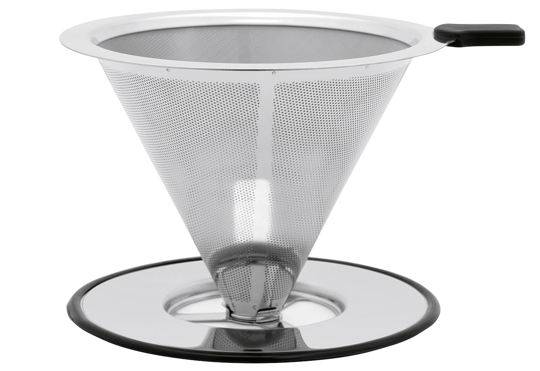 Feinmaschiger Kaffeefilter aus hochwertigem rostfreien Stahl. Damit gehören Papierfilter der Vergangenheit an! Die Unterseite des Filters kann abgenommen werden, damit Sie den Filter auch in die Kaffeekanne hängen können.Lieferumfang: