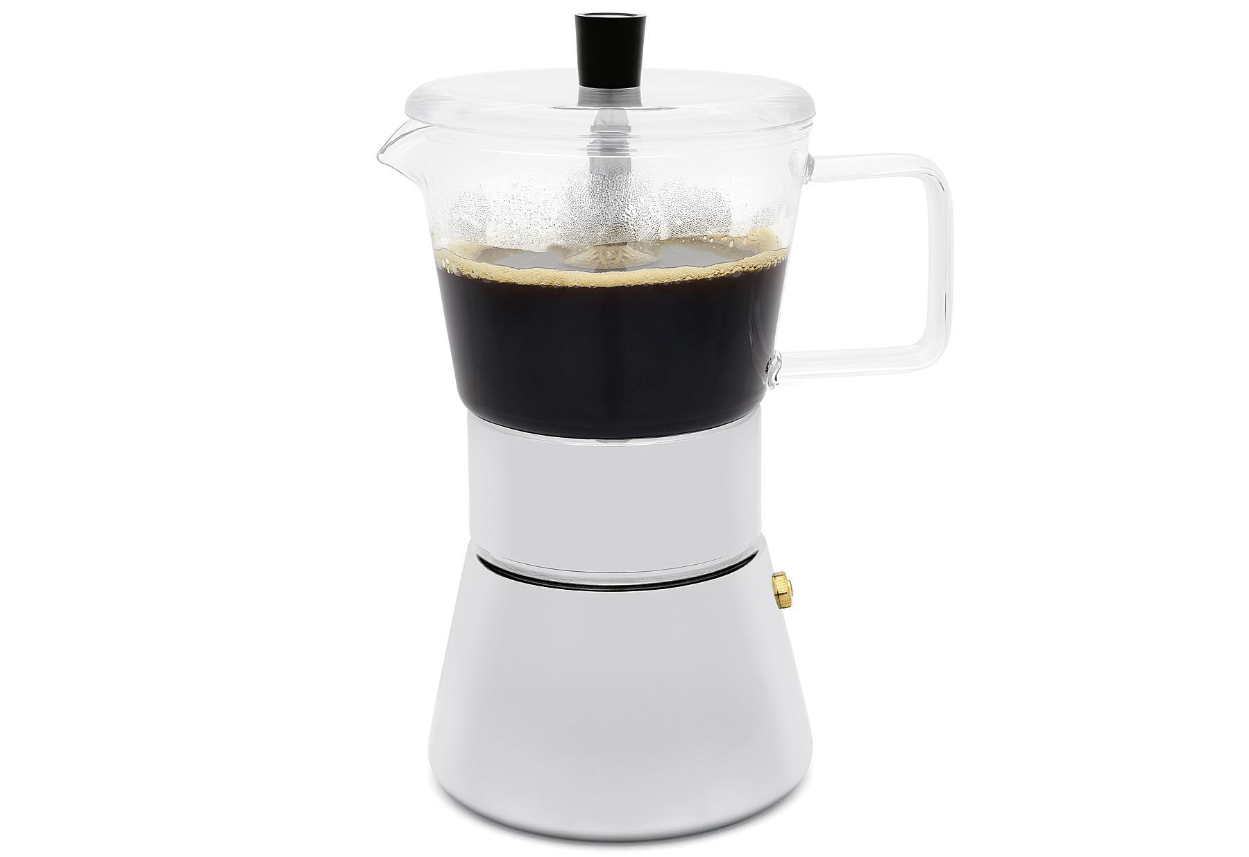 Leopold Vienna Espressokocher "Otto", 4 Tassen, Edelstahl matt / Glas, kompaktes Design, einfach zu bedienen, durch das gläserne Oberteil kann die Zubereitung des Espressos verfolgt werden. Die Teile des Otto lassen sich zur einfachen Reinigung leicht auseinandernehmen, das Glas kann in der Spülmaschine gereinigt werden. Füllvolumen 240 ml, für 4 Espressi.Attribute