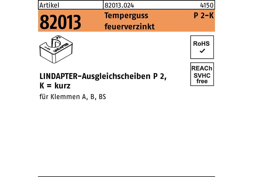 Artikel 82013 Temperguss P 2-K feuerverzinkt LINDAPTER-Ausgleichsscheiben P 2 · kurz - Abmessung: M 16 / 16,0 VE=S (1 Stück )Weitere technische Eigenschaften: