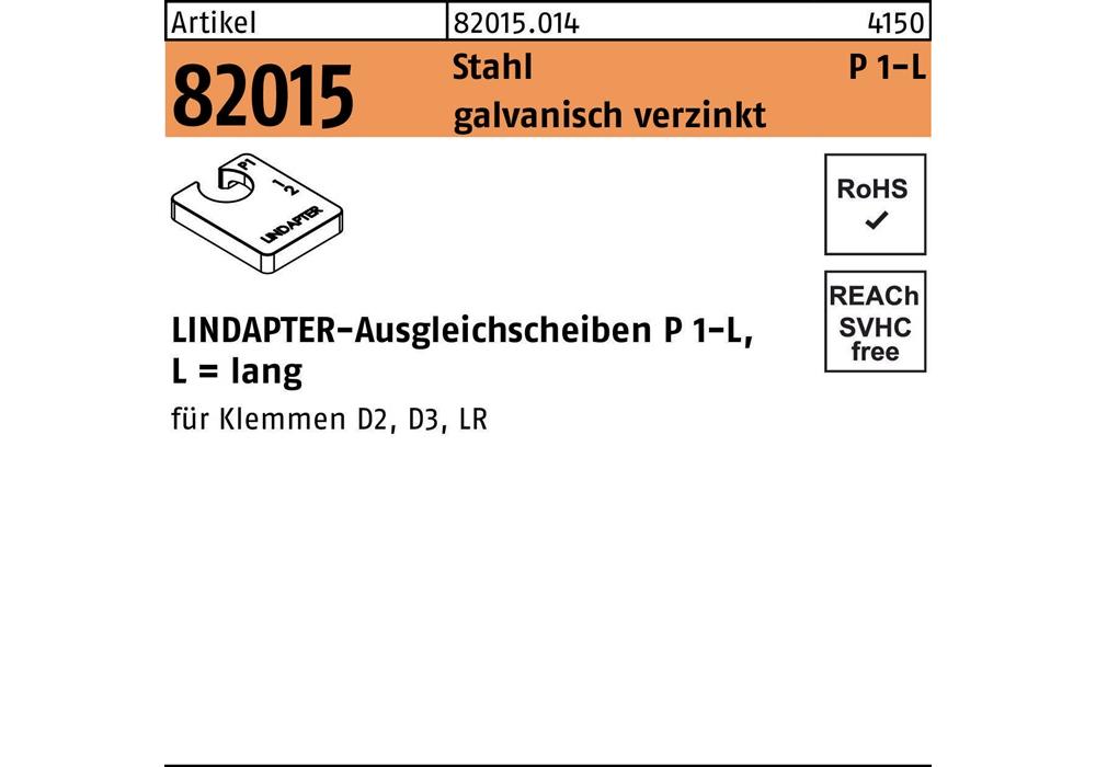 Artikel 82015 Stahl P 1-L galvanisch verzinkt LINDAPTER-Ausgleichsscheiben P 1-L · lang - Abmessung: M 16 / 8,0 VE=S (1 Stück )Weitere technische Eigenschaften: