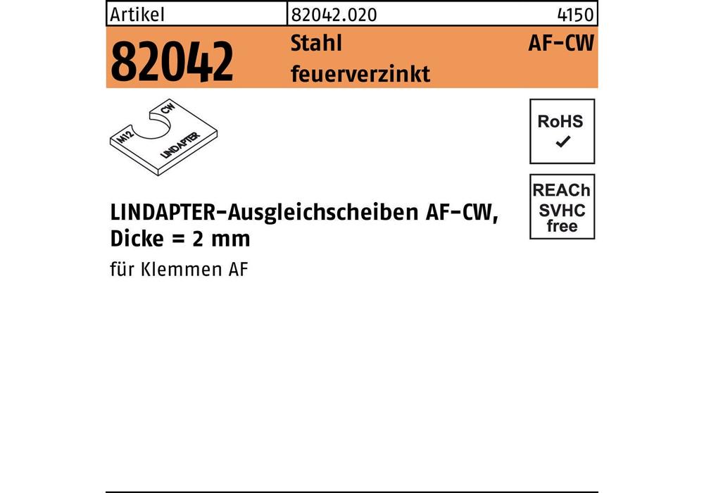 Artikel 82042 Stahl AF-CW feuerverzinkt LINDAPTER-Ausgleichsscheiben AF-CW · Dicke = 2 mm - Abmessung: AF M 12 CW VE=S (1 Stück )Weitere technische Eigenschaften: