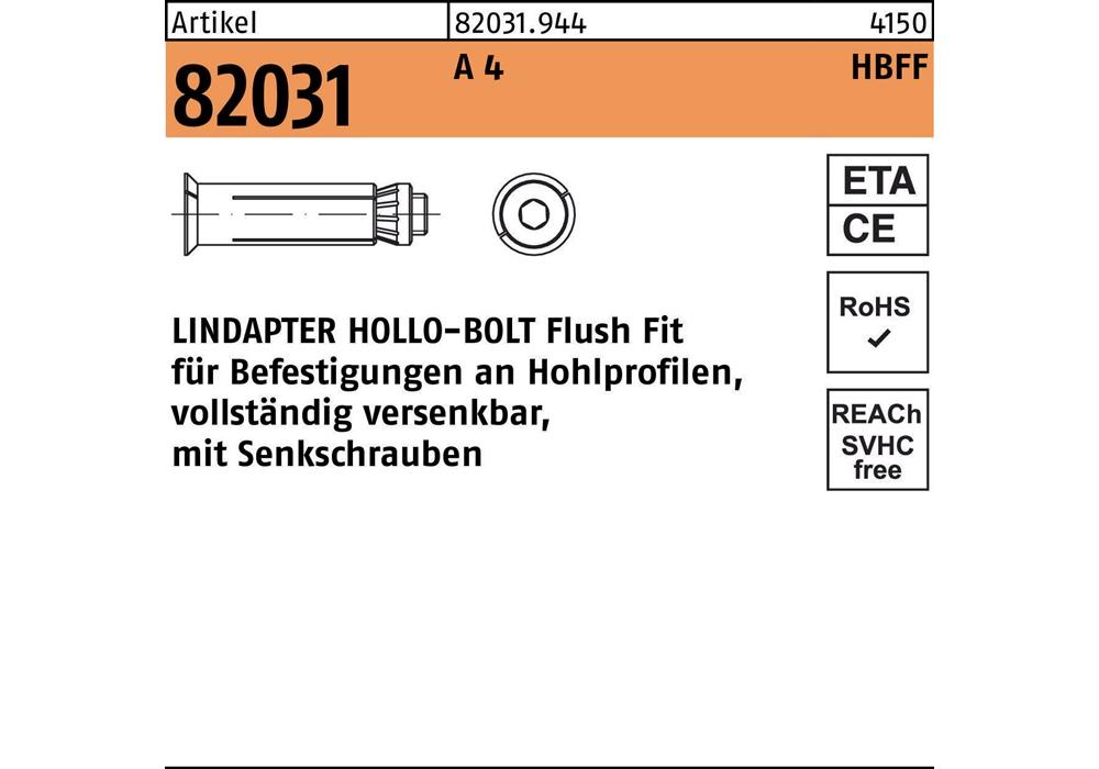 Artikel 82031 A 4 HBFF LINDAPTER-HOLLO-BOLT FlushFit f. vollst. versenkbare Befestigung an Hohlprofilen - Abmessung: HBFF 10-2 ( 70/45) VE=S (1 Stück)Weitere technische Eigenschaften: