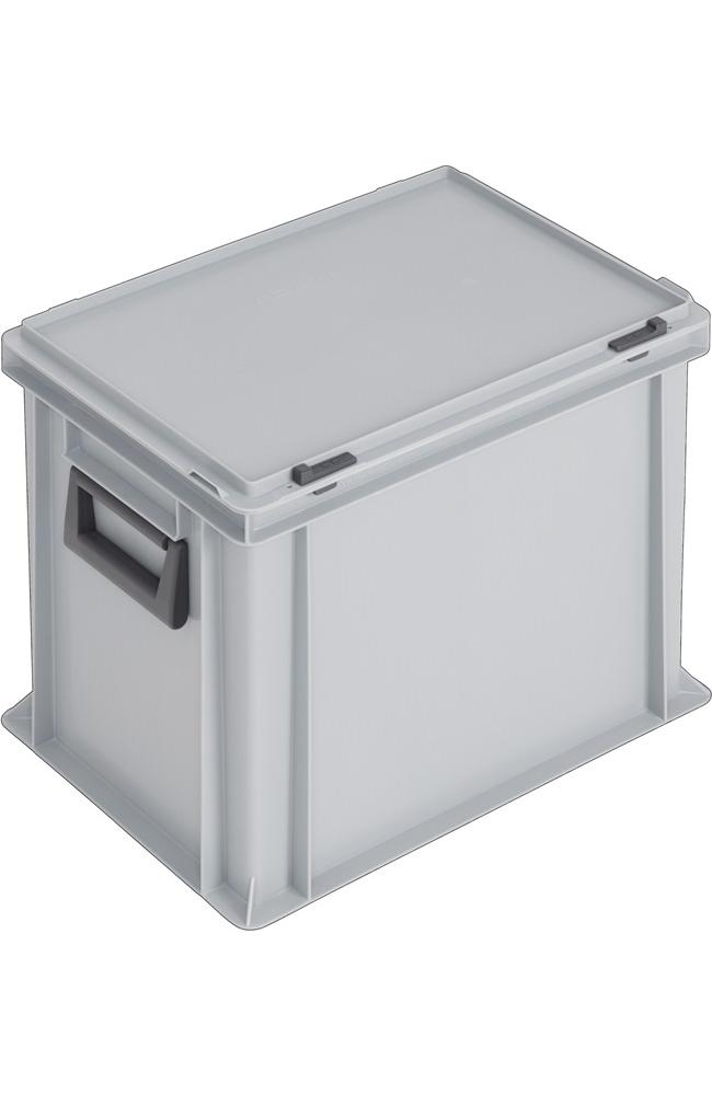 aus Polypropylen · mit 2 Griffen an den Stirnseiten · mit einrastendem Schiebeverschluss · sehr stabil · rutschsicher stapelbar · resistent gegen die meisten Säuren und Öle · temperaturbeständig von -20 °C bis +80 °C · Farbe grauWeitere technische Eigenschaften: