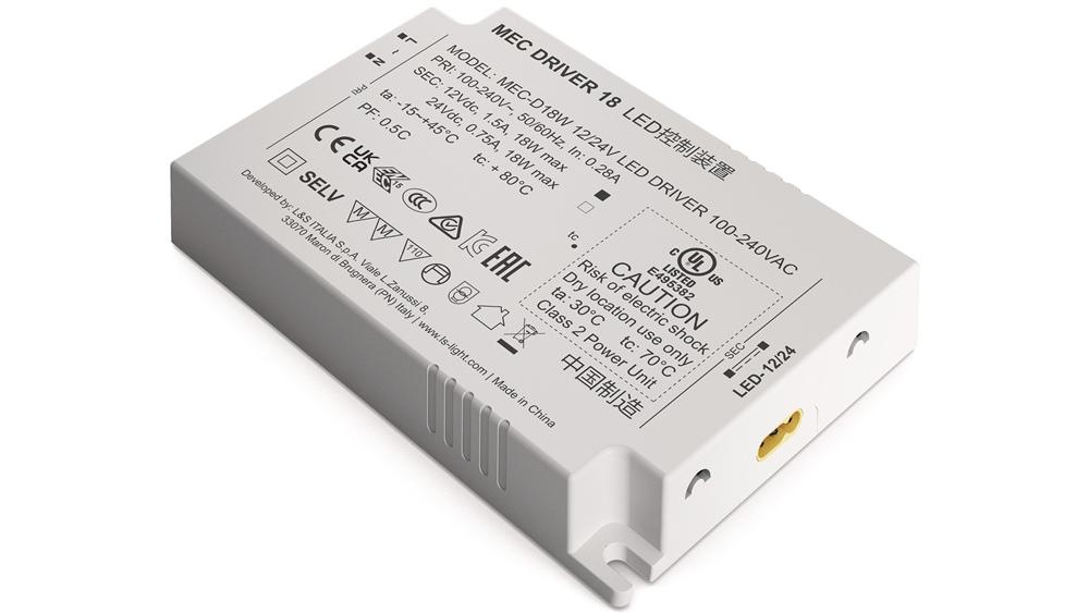 L&S LED Konverter 100-240 V / AC 12 + 24 V DC Länge 110 mm 18 W weiß glatt