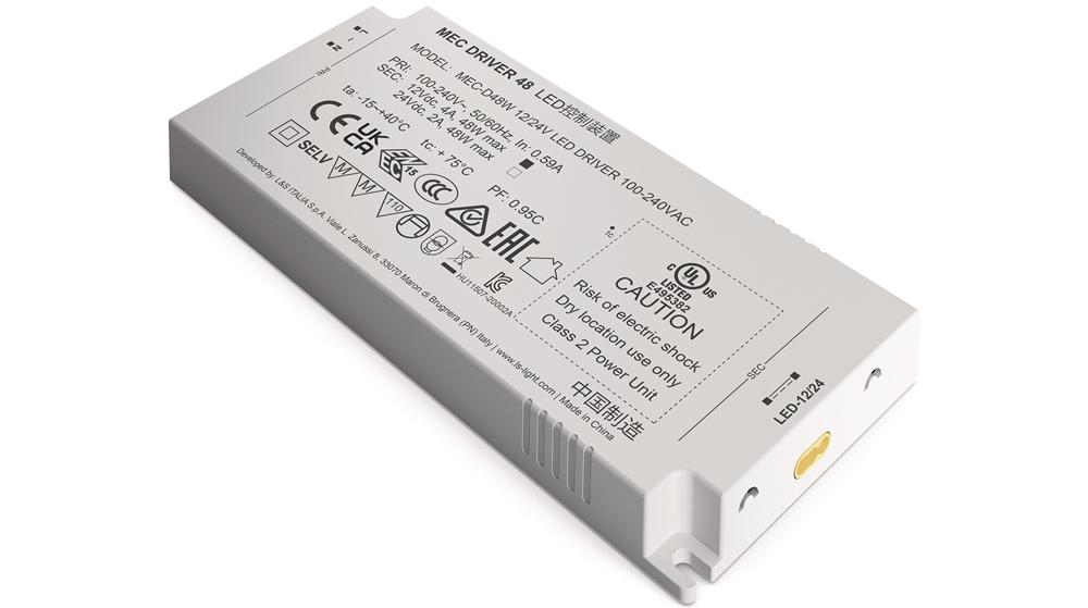 L&S LED Konverter 100-240 V / AC 12 + 24 V DC Länge 160 mm 48 W weiß glatt