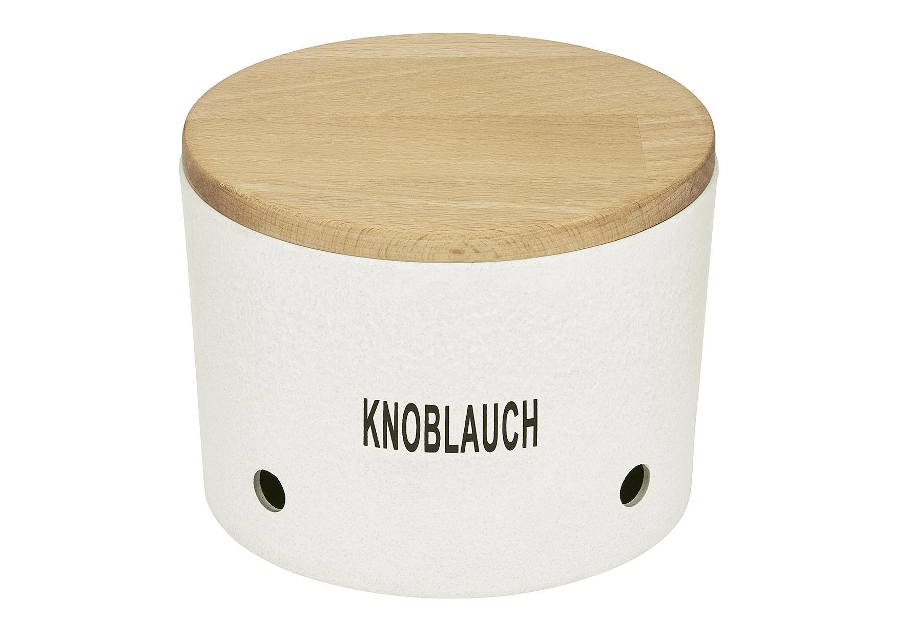 Magu Knoblauchtopf "Natur Design" mit Buchenholz-Deckel. Hergestellt aus Bio-Kunststoff (98 % natürliche Materialien, 2 % Mineralien), 100% erdölfrei, keinerlei Weichmacher. Spülmaschinengeeignet und lebensmittelecht. Hitzebeständig bis 70°CLieferumfang: