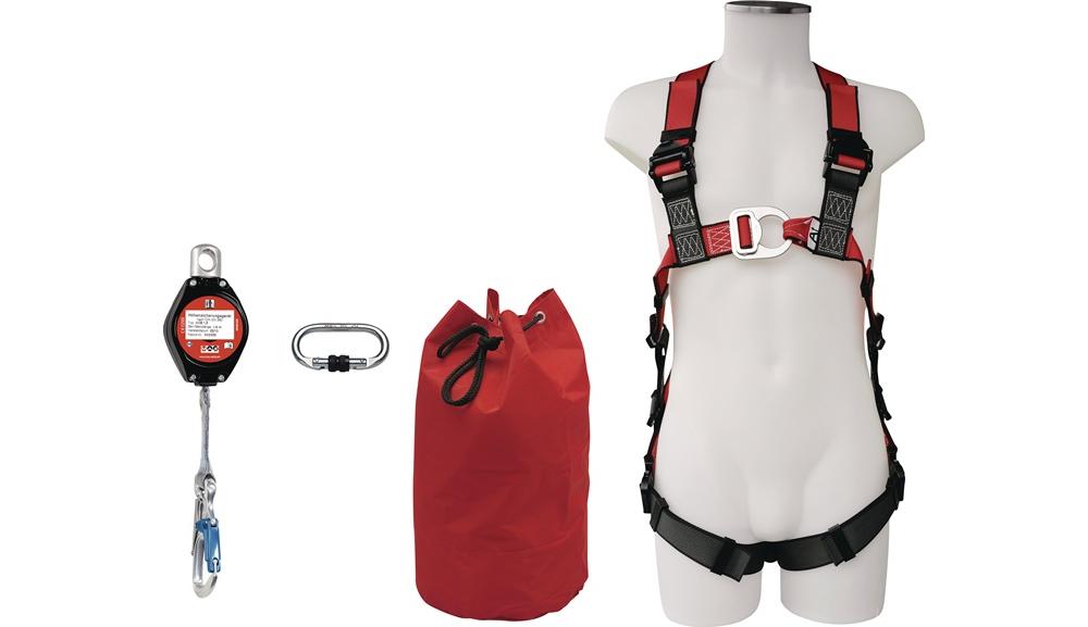 | Ausführung | Auffanggurt MAS 40, Quick, Höhensicherungsgerät ACB 1,8m, Karabinerhaken BS 20, Gerätebeutel |