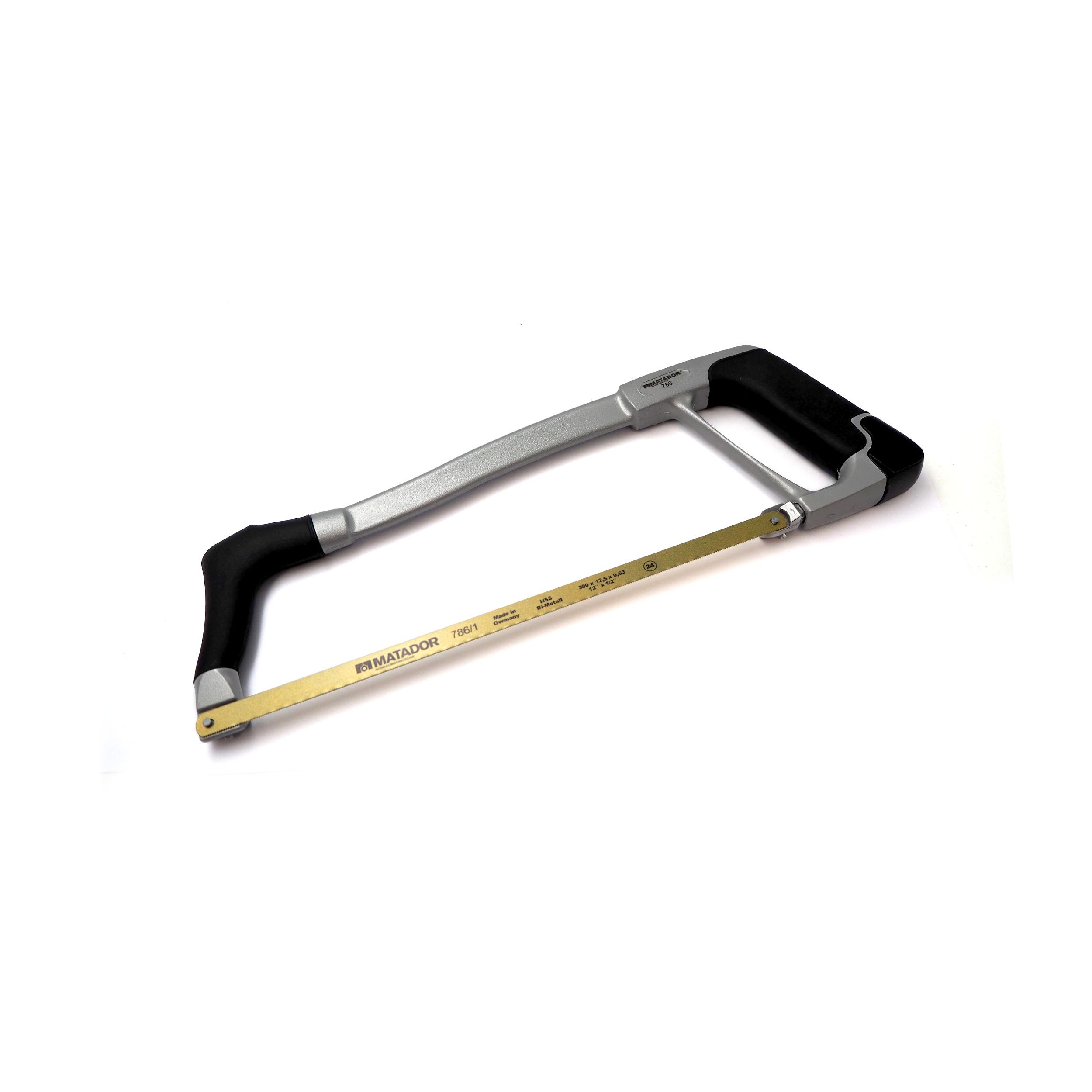 Metallbügelsäge mit hoher Blattspannung von 100 kg für gerade, saubere Schnitte mit exakten Fugen. Leichter Aluminiumrahmen mit Stahlkern für einfache Handhabung. Alternative Blattspannung bei 55° für bündige Schnitte. Im Griff integrierter Spannmechanismus. Mit Hochleistungssägeblatt aus HSS-DMo5 Bi-Metall. Aus Hochleistungsschnellstahl mit Oberflächensonderbehandlung (dampfangelassen). Zum Sägen von Metallen und Legierungen bis 800 N/mm², zahnhart. 24 Zähne pro Zoll, für ausgezeichnete Schnittergebnisse. Kombiniert Höchstleistung mit Bruchsicherheit.
