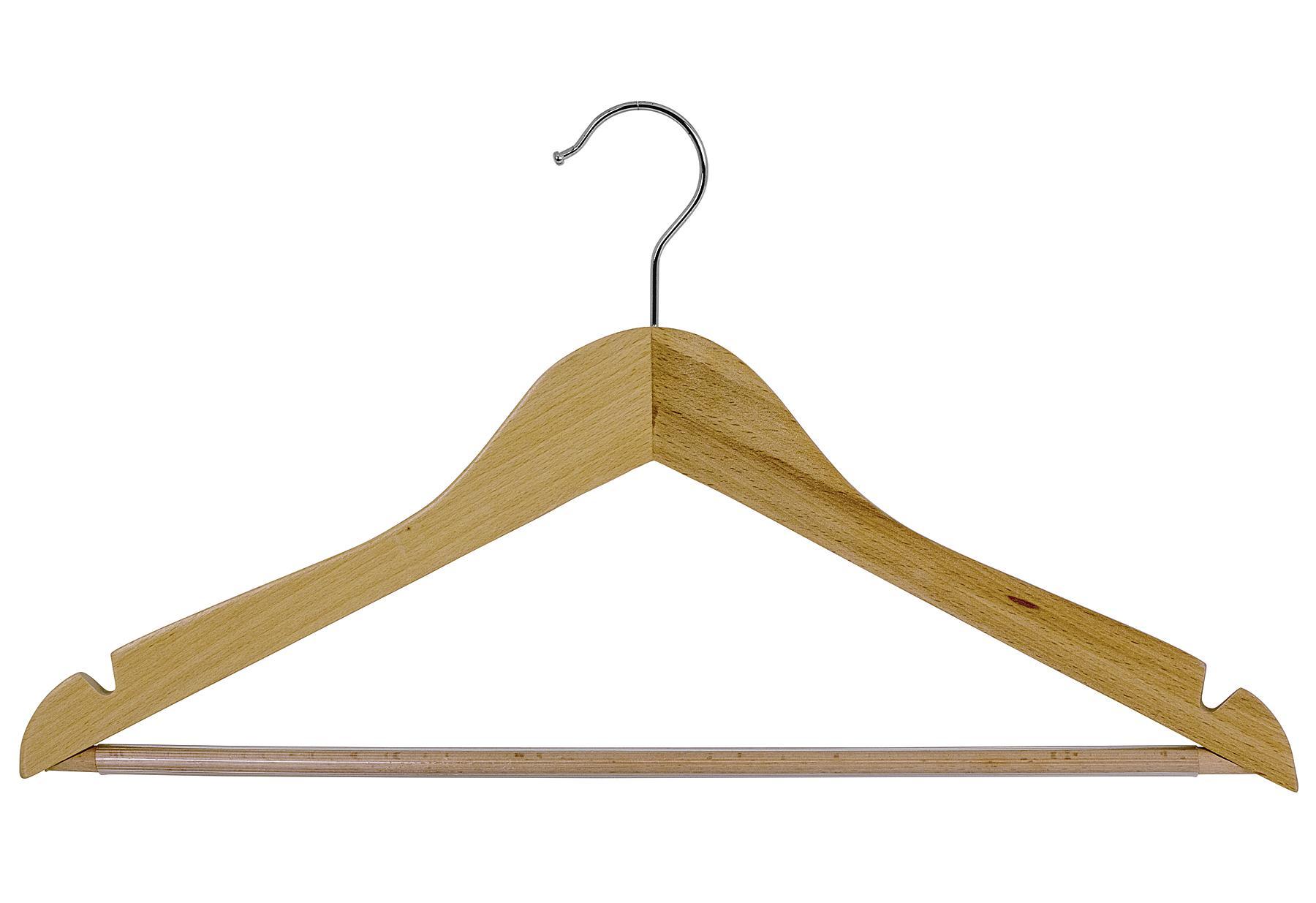 Körperformbügel Business mit Rockeinkerbung, aus Massivholz, 45 cm, Holzsteg mit transparenter, rutschfester Ummantelung, drehbarer HakenLieferumfang: