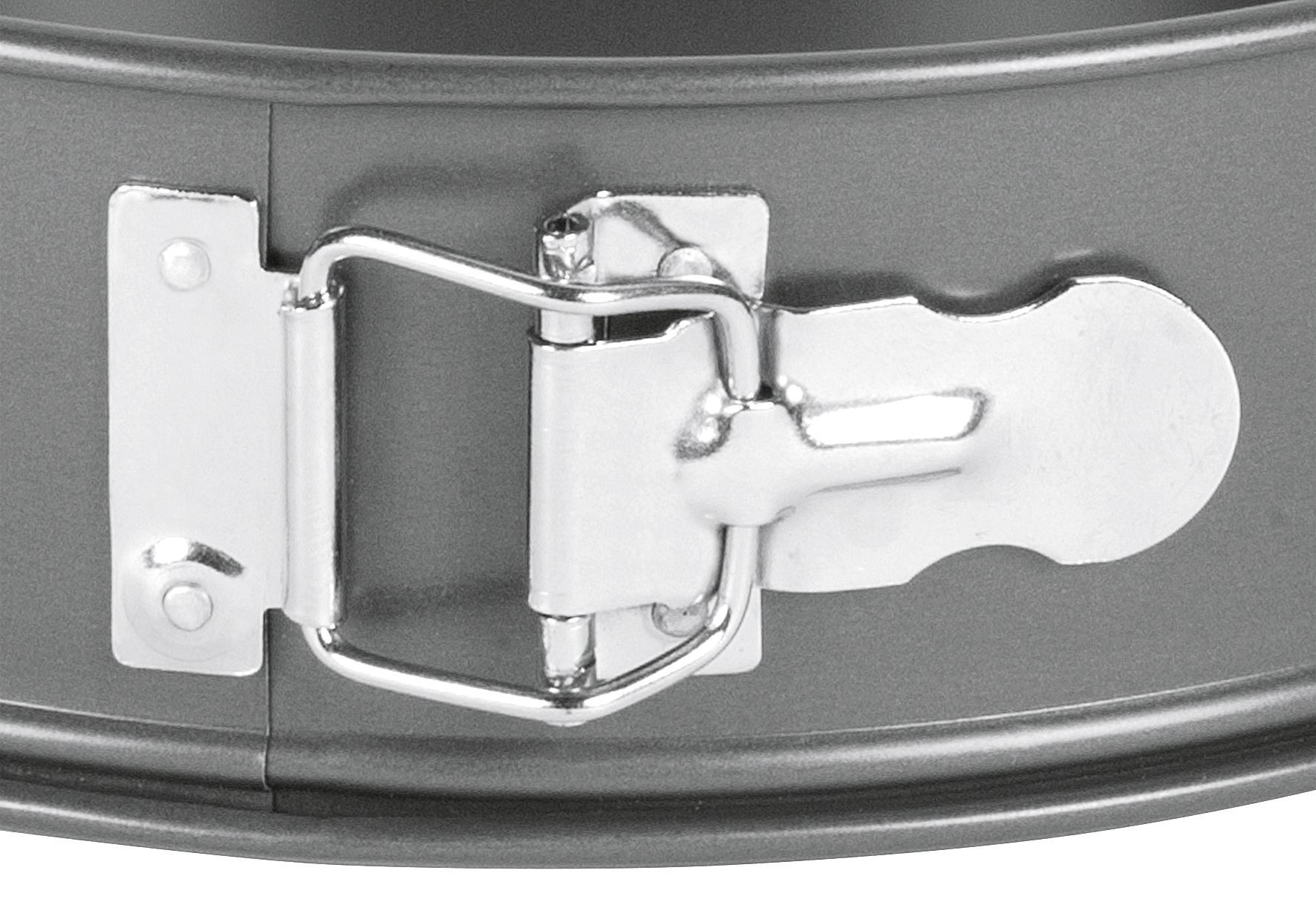 Mit der einteiligen Springform aus der "Profi"-Serie von my basics gelingen Ihnen Tortenböden, Obst- und Sandkuchen ohne Probleme. Dank der Antihaftbeschichtung "Whitfort Xylan" bleibt kein Teig an der Form kleben. Die Springform besteht aus einem verzinnten Eisenblech mit herausnehmbarem Boden. Stürzen des Kuchens ist nicht nötig, da es einen abnehmbaren, sich weitenden Ring gibt. Der Durchmesser der Springform beträgt 28 cm.Lieferumfang: