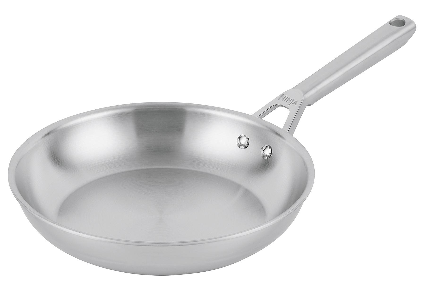 NINJA Bratpfanne "EverClad" Ø 28 cm, H 8,35 cm, aus Edelstahl. Fassungsvermögen: 2,6 l. Für alle Herdarten geeignet, kompatibel mit Ø 20,2 cm Induktionsring. Ofenfest bis 315 °C, spülmaschinengeeignet.Lieferumfang:
