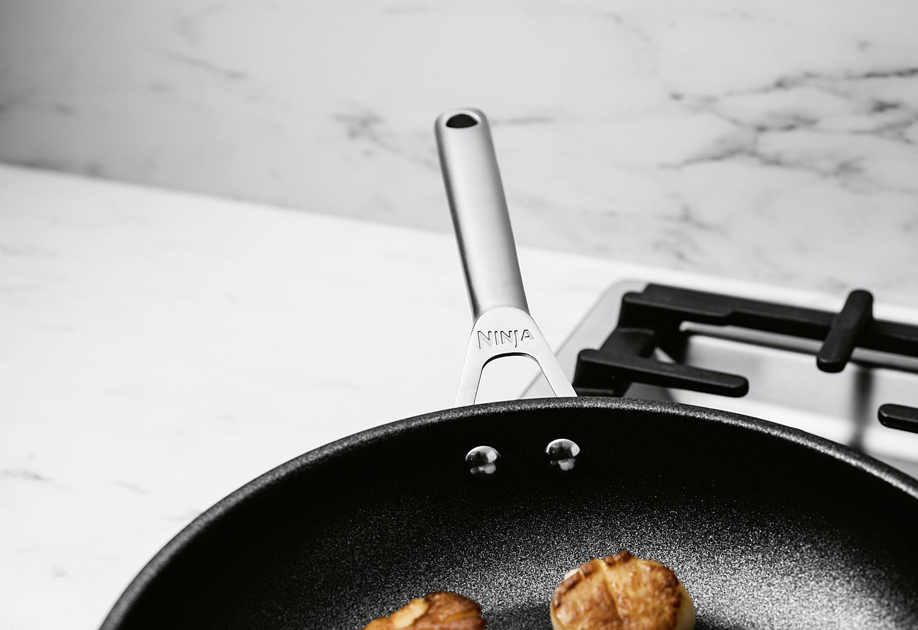 NINJA Bratpfanne "Zerostick" aus Edelstahl, Ø 28cm, H 9,3 cm - kein verkratzen oder abplatzen mehr durch einzigartige Antihaftbeschichtung, auch für Pfannenwender aus Metall geeignet, für alle Herdarten geeignet, backofenfest bis zu 260°C, spülmaschinenfest.