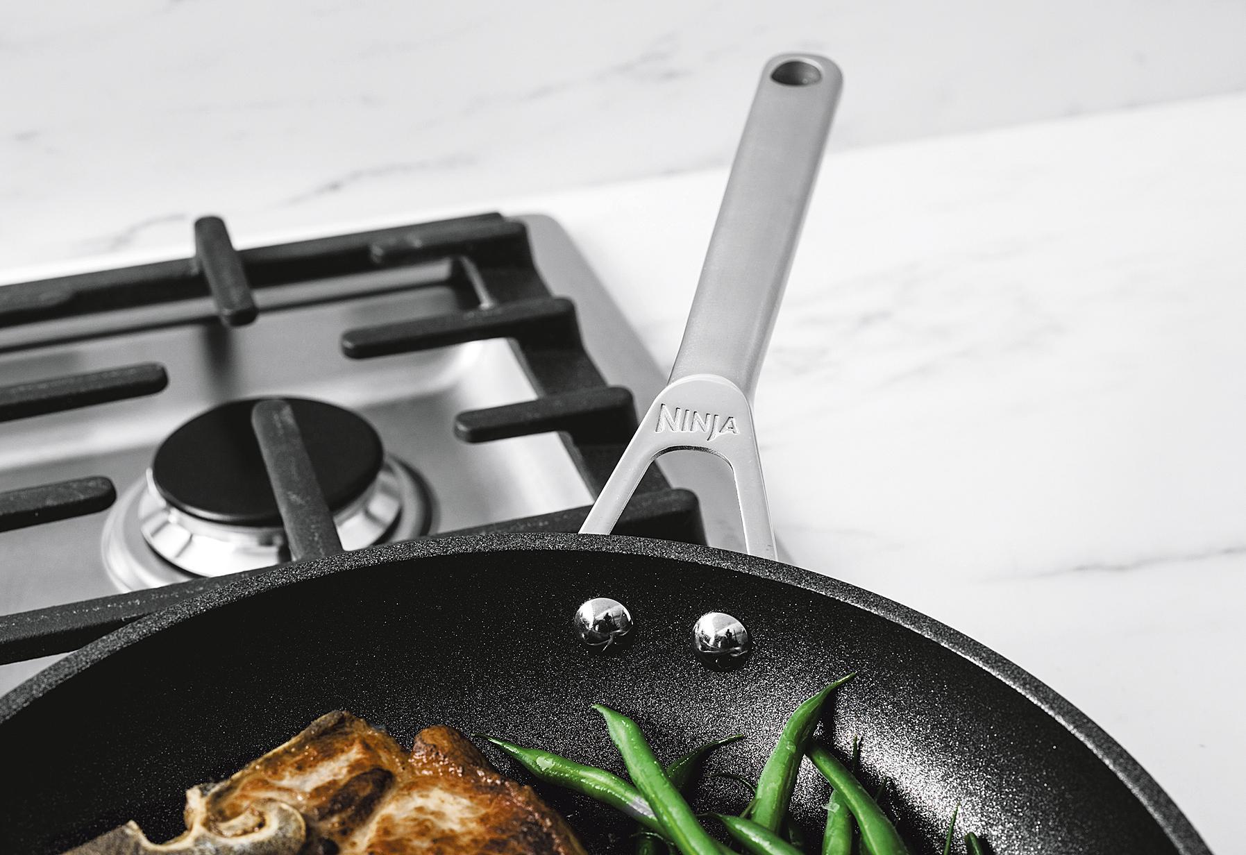 NINJA Bratpfanne "Zerostick" aus Edelstahl, Ø 24 cm, H 8,8 cm - kein verkratzen oder abplatzen mehr durch einzigartige Antihaftbeschichtung, auch für Pfannenwender aus Metall geeignet, für alle Herdarten geeignet (geeignet für einen 17,75 cm Induktionsring), backofenfest bis zu 260°C, spülmaschinenfest.Lieferumfang: