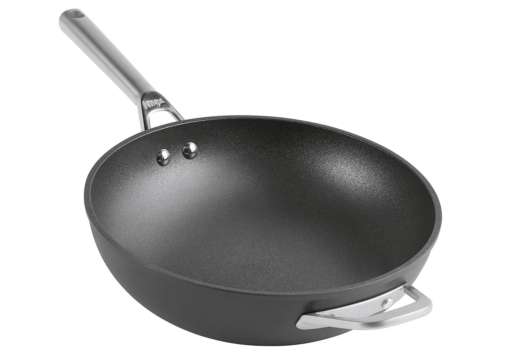 NINJA Wok 'Foodi Zerostick Premium' Ø 28 cm,geschmiedetes Aluminium mit harteloxierter Außenseite, kein verkratzen oder abplatzen mehr durch einzigartige Antihaftbeschichtung, auch für Pfannenwender aus Metall geeignet, garen mit wenig oder keinem Fett, ohne Anhaften, für alle Herdarten geeignet, Ø 20 cm Induktionsring, Ofen & Grillbenutzung bis zu 260°C, spülmaschinenfest. Maße: Ø 28 cm, H 14, 5 cm.
