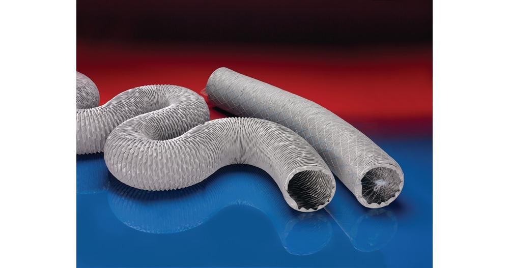 Anwendungen: flexibler Schlauch für Gase, Schweißrauchabsaugung, Absaugarm, Tierstall: Belüftung, Bauindustrie: Tunnelbelüftung, Bus, Nutzfahrzeug, Wohnwagen, Wohnmobil, Boot, Schiff, Yacht: Belüftung, Heizung, Asbestentsorgung, Bautentrocknung, Bautrocknung, Zeltbeheizung, Flughafengate Beheizung, Baustellenbeheizung, Reinraumbelüftung, Halbleiterfertigungsmaschine, Heizung: FrischluftzufuhrEigenschaften: gewebeverstärkt, superleichte Ausführung, hochflexibel + stauchbar 6:1, gute Laugen- und Säurenbeständigkeit, gute Chemikalienbeständigkeit, Wandung schwerentflammbar nach: NF P 92-503 M2, RoHS konform