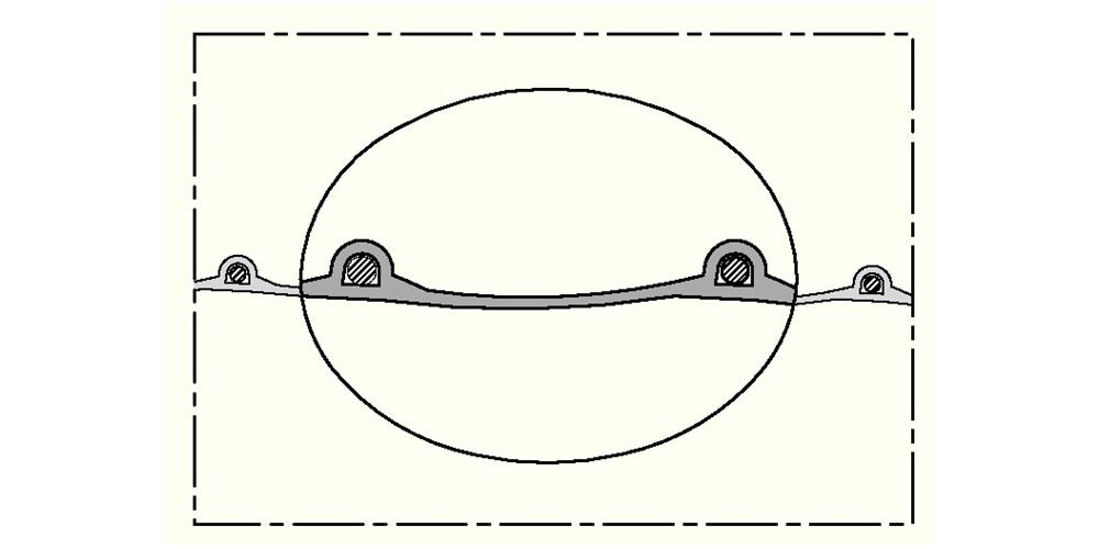 Konstruktion: 1. in der Wandung eingebetteter Federstahldraht, 2. gewebeverstärktes Band,