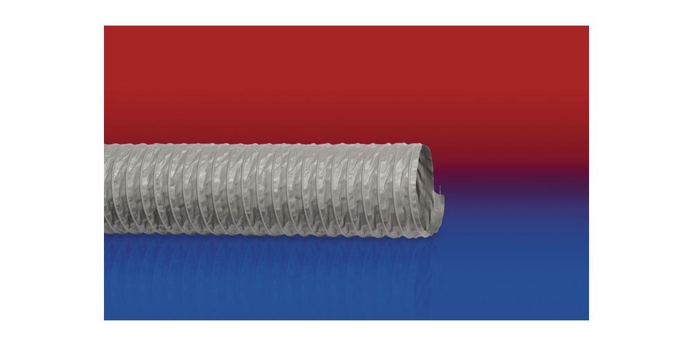 Anwendungen: Absaugarm, Bauindustrie: Tunnelbelüftung, Bus-, Nutzfahrzeug, Wohnwagen, Wohnmobil, Boot, Schiff, Yacht: Belüftung, Heizung · flexibler Schlauch für Gas, Schweißrauchabsaugung, Tierstall: BelüftungEigenschaften: gewebeverstärkt, gute Laugen- und Säurenbeständigkeit, hochflexibel, stauchbar 6:1 · mittelschwere Ausführung · RoHS konform · Wandung schwerentflammbar nach: NF P 92-503 M2
