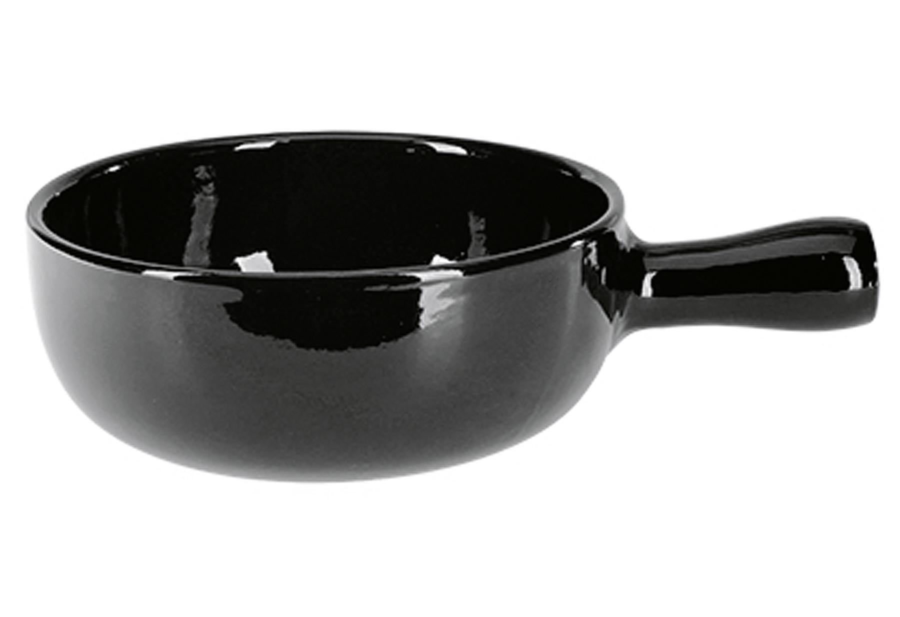 Käsefondue-Caquelon, schwarz uni, Ø 22 cm, Caquelon aus Terracotta, Glasur schwarz glänzend, Füllmenge 1,7 Liter, Made in Italy
