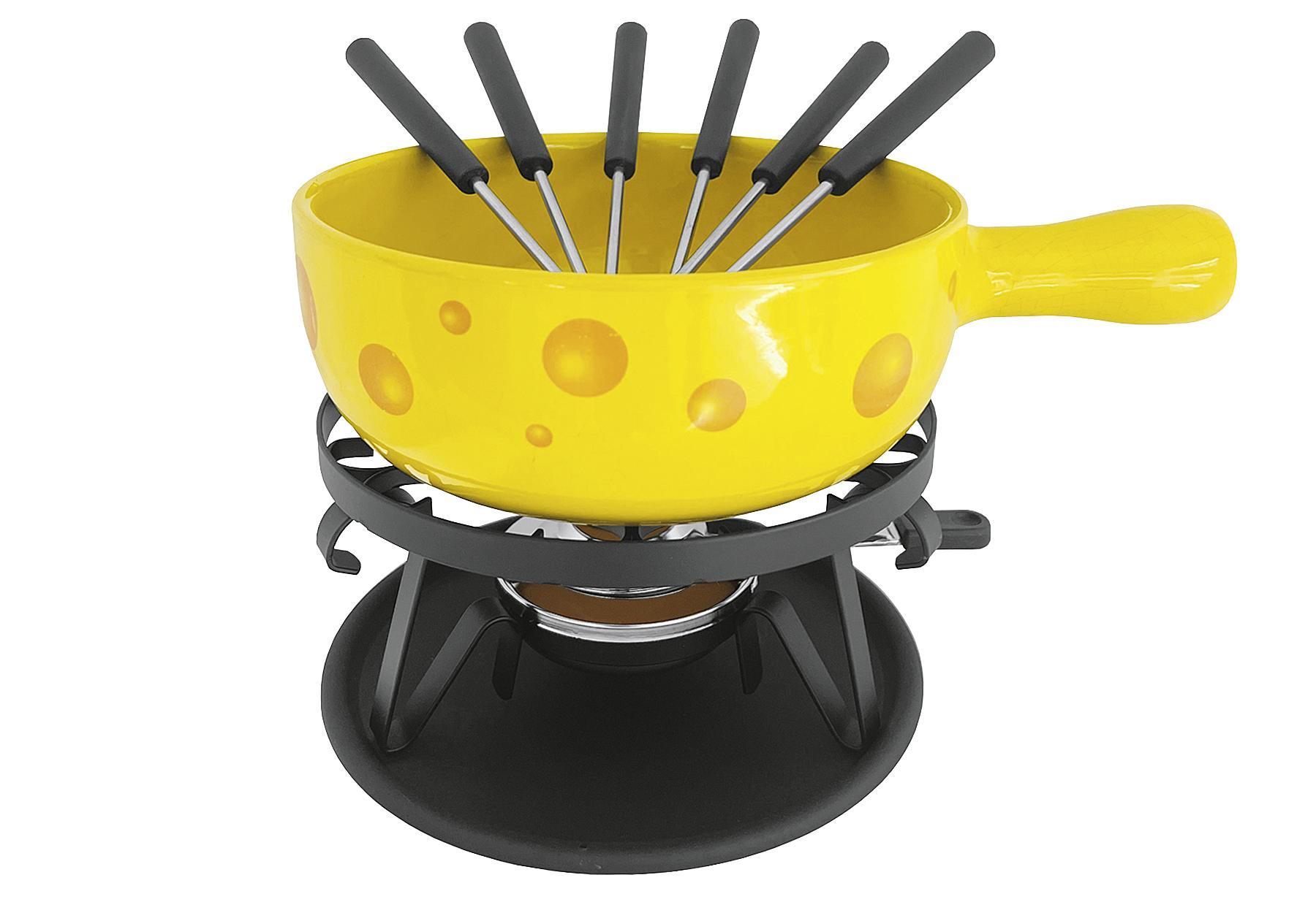 Käsefondue Set "Formaggio", gelb mit Käseloch Dekor