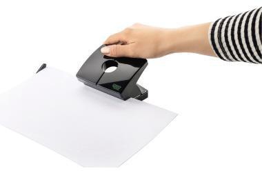 Nachhaltiger Bürolocher mit einem Rezyklatanteil von 64 % am Gesamtkunststoffeinsatz. Das Kunststoffoberteil besteht zu 100 % aus nachhaltigem Rezyklat. Für den professionellen Einsatz. Rutschfester Boden · der sich zum Entleeren halb öffnen und einfach wieder verschließen lässt.Attribute