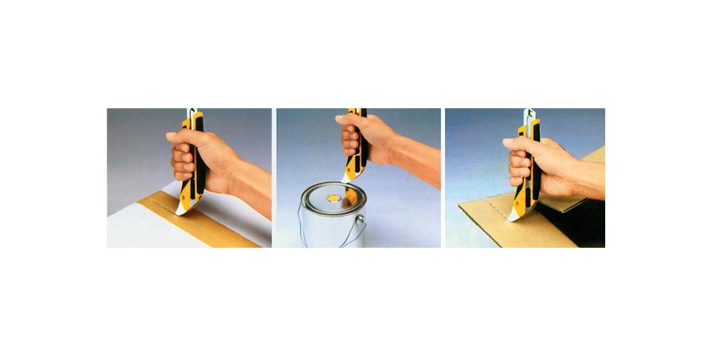 mit Metallführung, Antirutsch-Gummigriffeinlage und praktischem Verpackungs- und Farbdosenöffner · mit schwarzer Klinge bestückt / ultrascharfWeitere technische Eigenschaften: