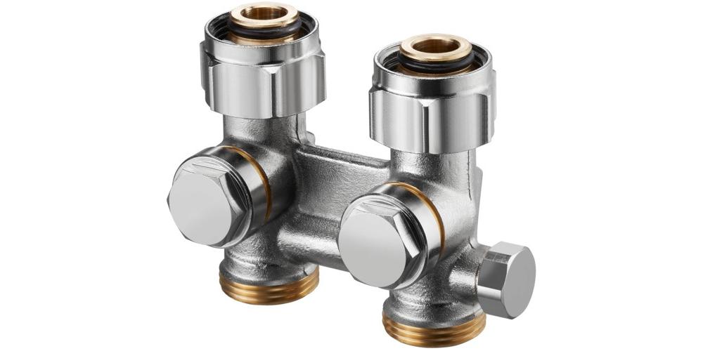 ZBU·Absperrverschraubung Multiflex FZweirohr·Block · umstellbar auf Einrohrbetrieb · aus Messing · vernickelt · Rohrabstand 50 mm · Weichdichtung zum Heizkörper. Zum Entleeren · Befüllen und mit Voreinstellung.Die Multiflex Anschlussarmatur passt auf die integrierten Ventilgarnituren der Heizkörperhersteller:Baufa · Brötje · Brugman · Buderus · De 'Longhi · Kermi · Radel · Ribe · Vogel + NootWeitere technische Eigenschaften: