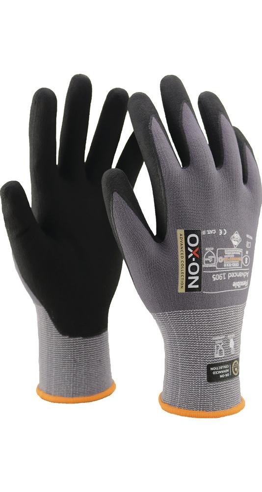OX-ON Handschuhe Flexible Advanced 1905 Größe 6 schwarz/hellgrau EN 388, EN 420+A1 PSA-Kategorie II