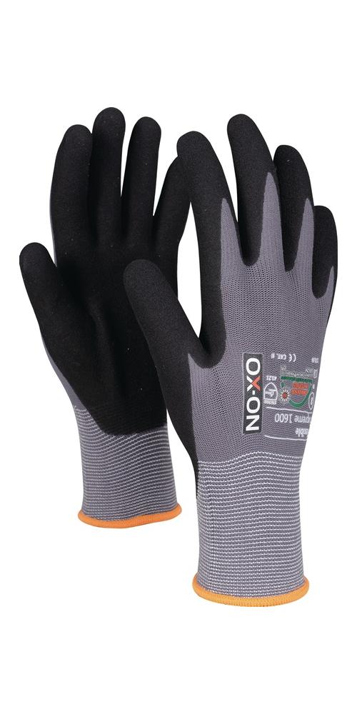 OX-ON Handschuhe Flexible Supreme 1600 Größe 10 schwarz/hellgrau EN388 EN420+A1 EN407 PSA-Kategorie II