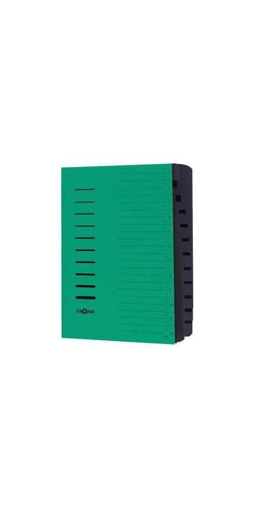 PAGNA Ordnungsmappe DIN A4 240g/m² Pressspankarton Farbe: grün Farbe des Fächerblocks: schwarz 12 Fächer