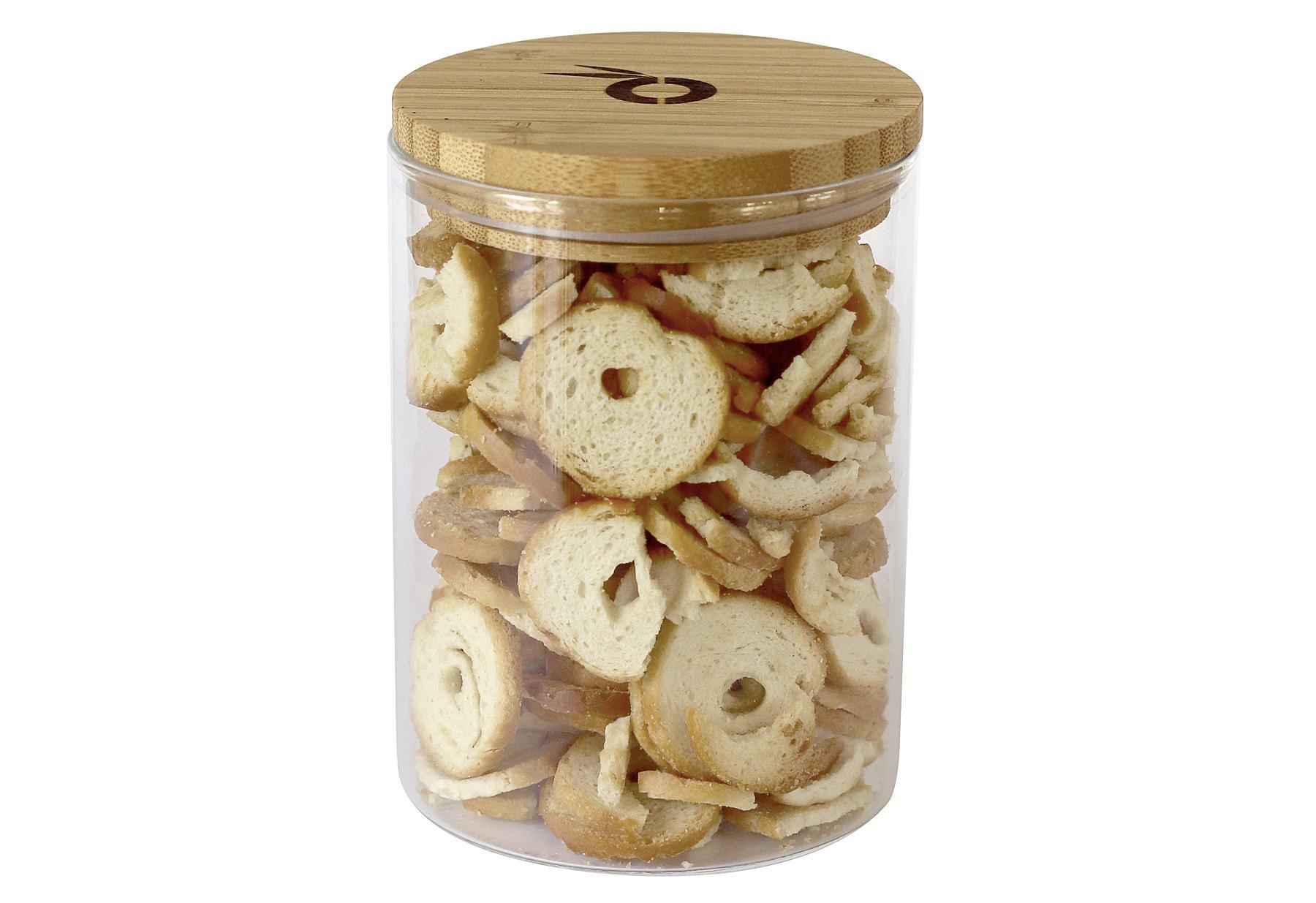 PANDOO Vorratsglas, mit Bambusdeckel, Dichtungsring aus Silikon, Ø 9,5 cm, H 12,5 cm - Volumen: 800 ml | 70% Borsilikatglas / 30% Bambus | Nachhaltige Aufbewahrung | Ideal in der Küche.Attribute
