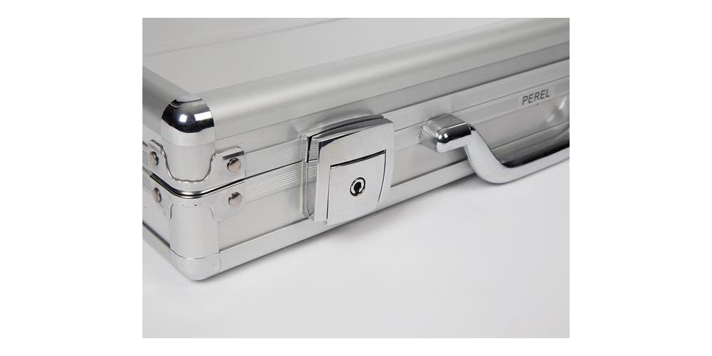 Diese Aluminiumtasche von Perel ist ideal für die Aufbewahrung und den Transport eines Laptops. Das Gehäuse ist leicht und dennoch robust und verfügt über verstärkte und abgerundete Ecken. Mit den beiden Schlüsselschlössern können Sie den Koffer sicher verschließen. Die Tasche ist mit einem praktischen Schultergurt ausgestattet.Attribute