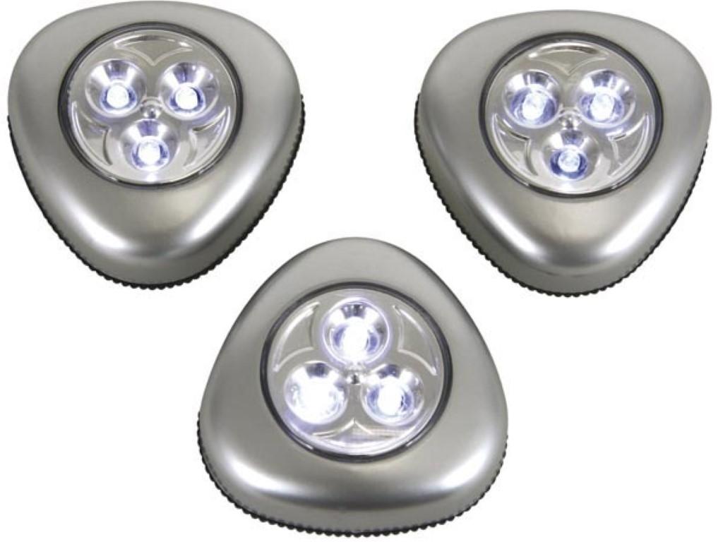 3 selbstklebende LED-Lampen in einer Doppel-Blisterverpackung.Attribute