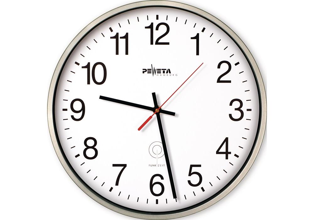 PEWETA Funkuhr Funkuhr Kunststoff mattsilber Ø 250 mm 1,5 V Zahlen