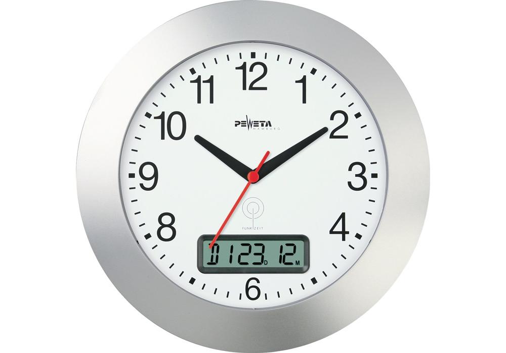 PEWETA Wanduhr Funkuhr Kunststoff mattsilber Ø 300 mm Zahlen