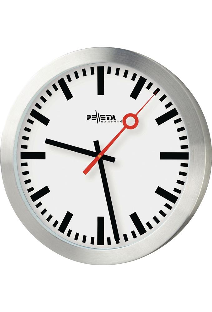 PEWETA Wanduhr Quarzuhr Aluminium mattsilber Ø 300 mm 1,5 V Balken Ø 300 mm