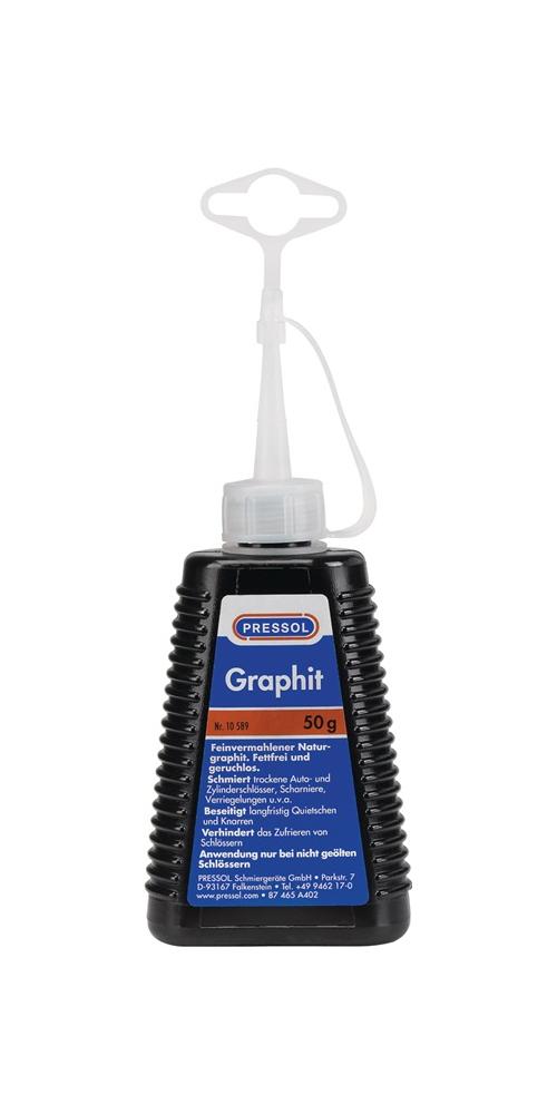 feinvermahlener Naturgraphit · fettfrei und geruchlos · schmiert trockene Auto- und Zylinderschlösser, Scharniere und Verriegelungen · beseitigt langfristig Quietschen und Knarren · verhindert das Zufrieren von Schlössern · Anwendung nur bei nicht geölten Schlössern · dicht durch auslaufsichere Verschlusskappe · genaue Dosierung möglichWeitere technische Eigenschaften: