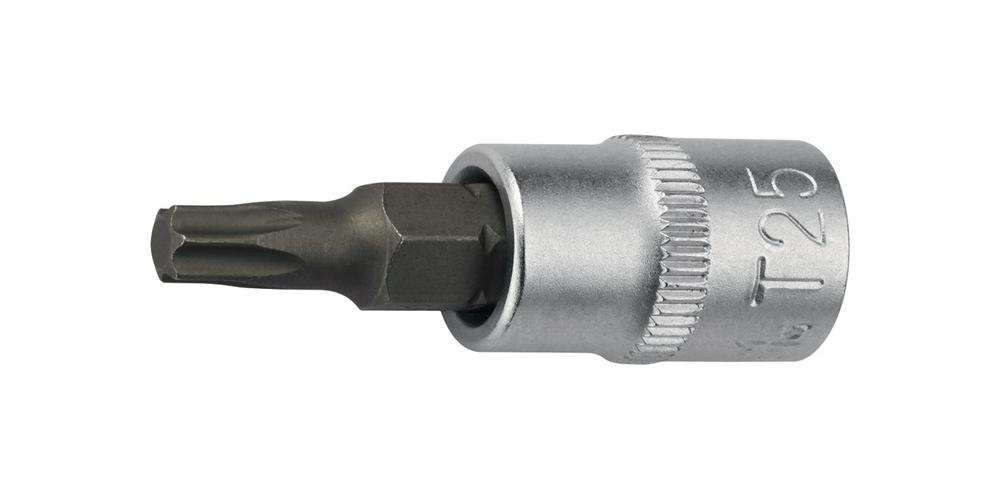 6,3 mm (1/4 ″)-Vierkantantrieb · für Schrauben mit Innen-TORX®-Profil · Sockel aus Chrom-Vanadium-Stahl · matt verchromt · Klinge aus Sonderstahl · phosphatiert