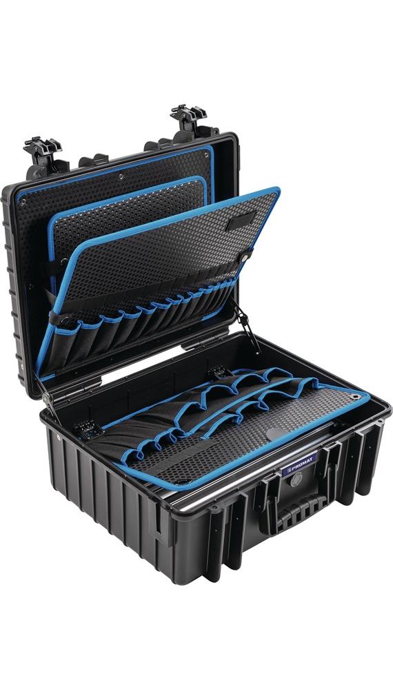 extrem robuste und schlagfeste Ausführung aus Polypropylen · staubdicht und spritzwassergeschützt · ergonomischer Zwei-Komponentengriff · automatisches Luftdruckausgleichsventil · Eigentumskennzeichnung möglich · Ösen für Vorhängeschloss (Vorhängeschloss gehört nicht zum Lieferumfang) · zwei Deckelhalter verhindern das Zuklappen des Deckels · Bodenschale individuell unterteilbar durch Alu-Trennstege